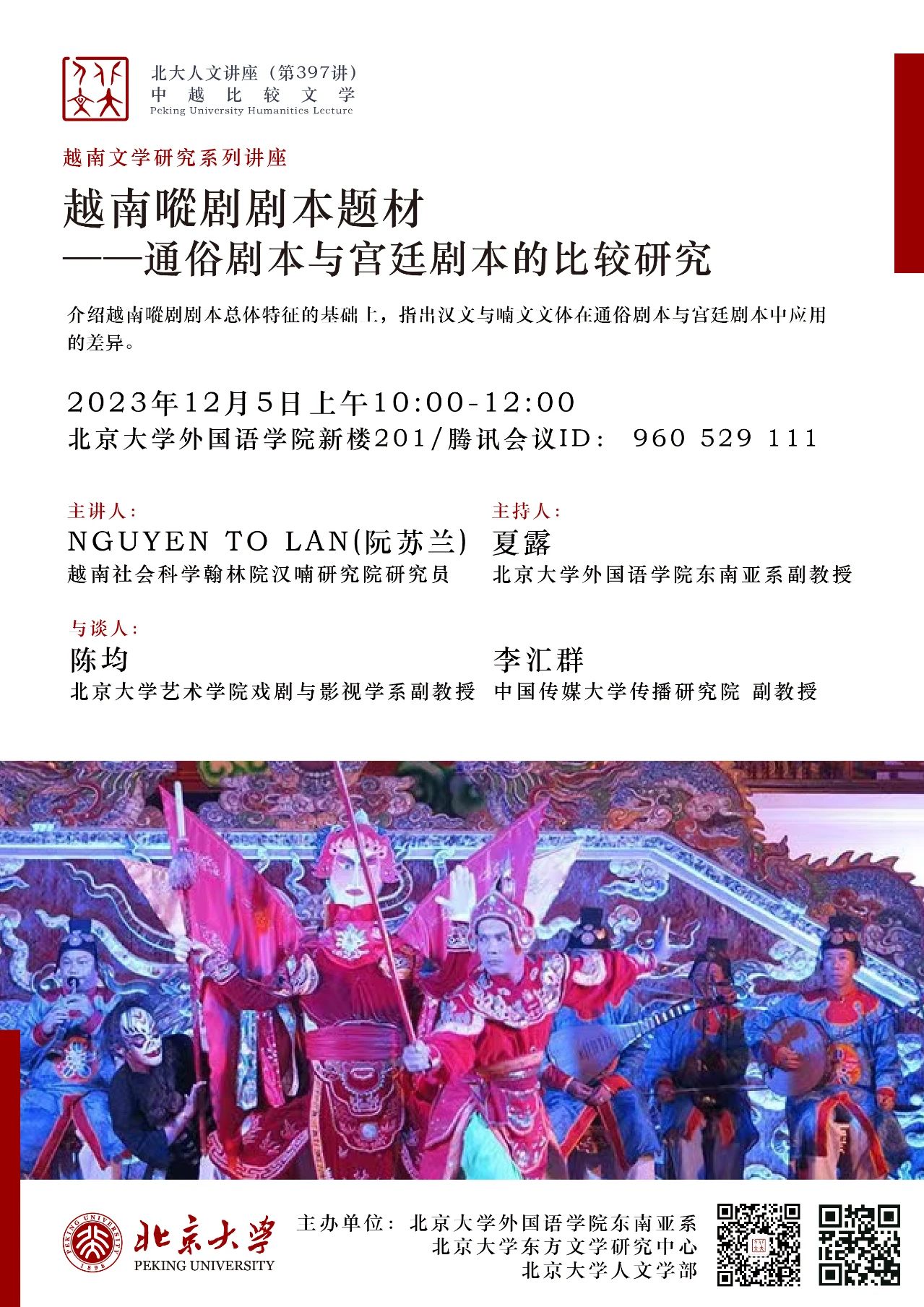 北大人文讲座:越南㗰剧剧本题材——通俗剧本与宫廷剧本的比较研究