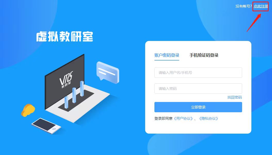 第二步:完成应用安装后,选择【点此注册】,输入手机号、密码、验证码进行注册;也可以在门户网站(http://vtrs.hep.com.cn)进行注册,下载客户端后直接登录。