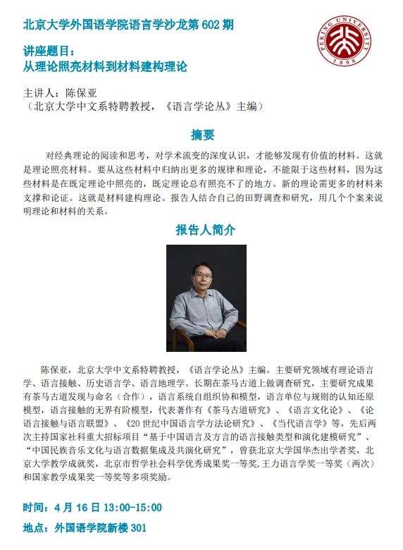 开云官方网页版语言学沙龙:从理论照亮材料到材料建构理论