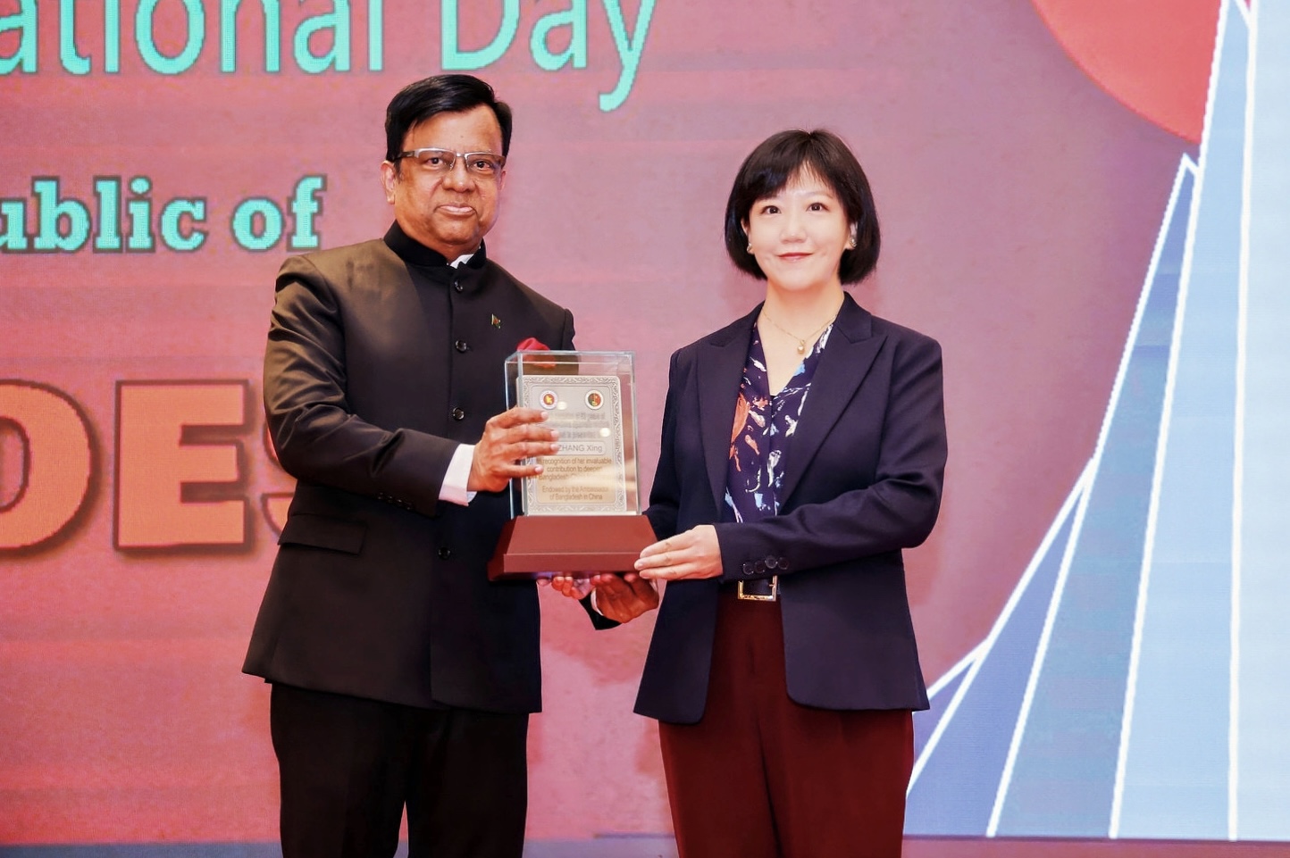 在中国与孟加拉国建交50周年之际,孟加拉国驻华大使纳兹穆尔(Md Nazmul Islam)于2025年4月9日在京举办的孟加拉国独立54周年国庆招待会上,颁授孟中建交50周年贡献奖,表彰为孟中友好关系作出突出成绩的中方五位个人和一个集体。开云官方网页版南亚学系南亚文化/孟加拉语教研室主任张幸副教授与四位中国前驻孟大使获得个人奖;中央广播电视总台孟加拉语部获得集体奖。