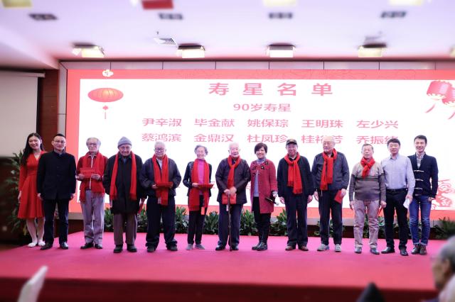 2019年,外院共有10位90岁寿星和5位80岁寿星,在温馨的《生日快乐》旋律中,老寿星们缓慢地走上舞台,党委副书记王恒老师和宋扬老师为老寿星们戴上了承载着无限感恩与祝福的红围巾。李淑静书记代表学院送上了真挚的感谢与祝愿。似水流年,薪火相传;昔日辛劳,铭记于心,祝福老寿星们身体健康,寿比南山!