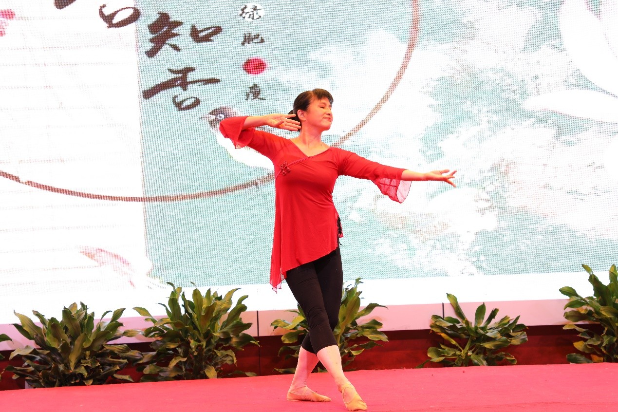 北京大学教工瑜伽社团的老师们带来了瑜伽表演“缥缃醉”,在悠扬悦耳的旋律中,老师们展示着优美的瑜伽动作,完美诠释了力量与柔韧的结合,一招一式,一呼一吸,尽显柔美与坚韧,将观众带入了幽雅、柔和的世界中。