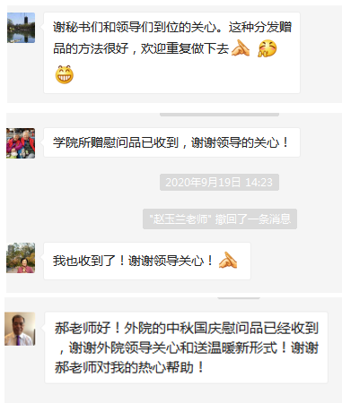 离退休老师通过微信表达对学院的感谢