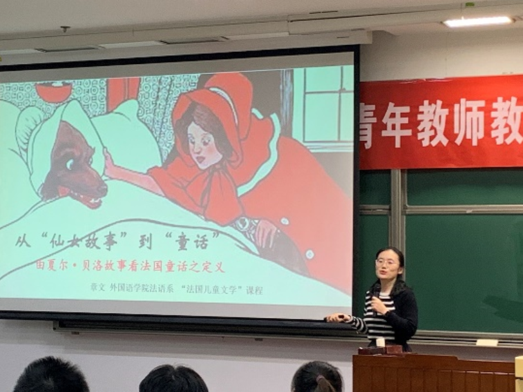 法语系章文老师在比赛中