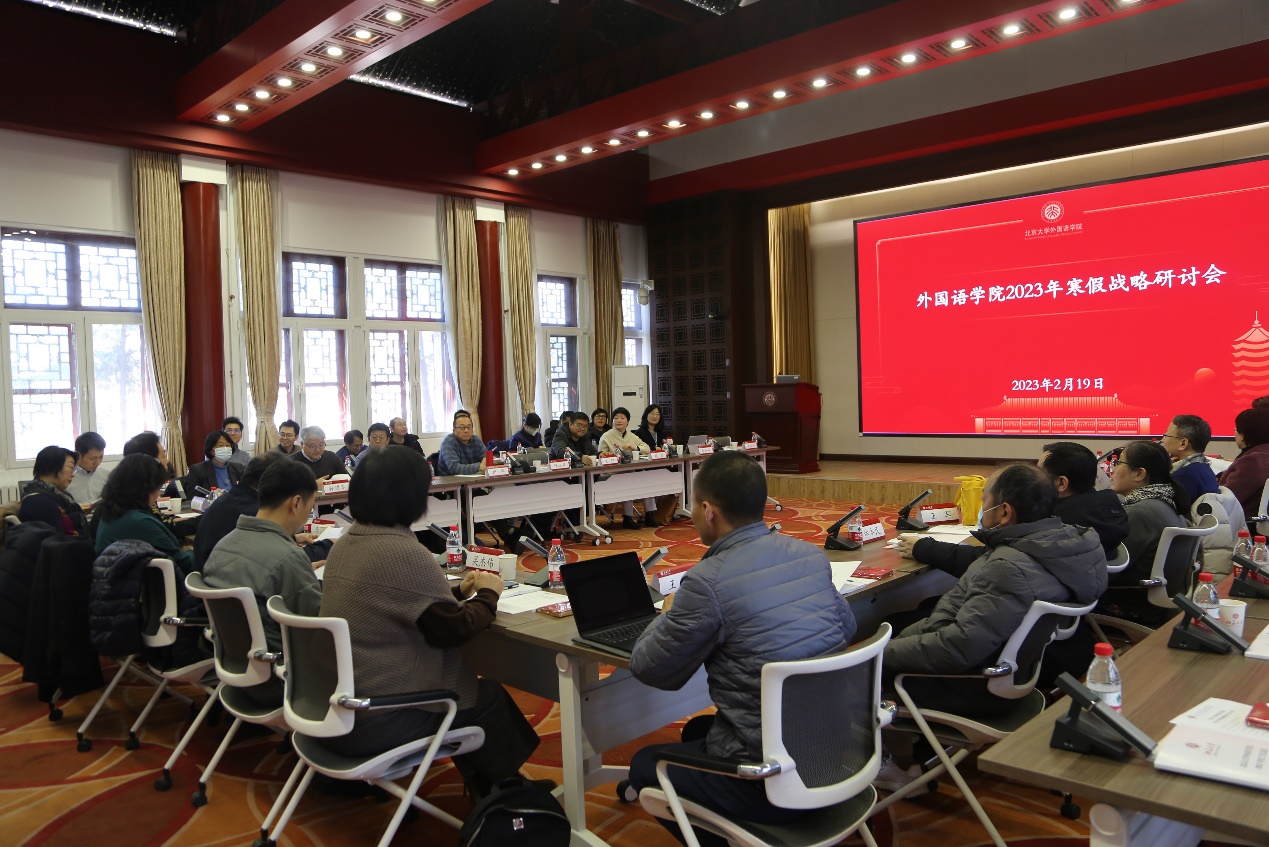 党委书记李淑静传达了刚刚结束的学校2023年寒假战略研讨会重要精神。今年是学习贯彻党的二十大精神开局之年,深入学习贯彻党的二十大精神、全力推进高质量发展是学校的工作主线。学校将2023年定为“国际战略年”,以期通过更高质量的开放办学,加强与世界交流,不断提升北大的国际化办学能力和全球声誉。开云官方网页版和各系(所、中心)要围绕学校发展核心任务,明确一流外语学科建设的重点工作,积极对接国家战略,全面提高外语人才培养质量,组建科研项目团队推进有组织的科研,优化引才育才机制加强师资队伍建设,发挥专业优势拓展国际交流合作,讲好中国故事,巩固北大外语学科的领先地位,持续提升北大外语人的社会影响力和国际影响力。