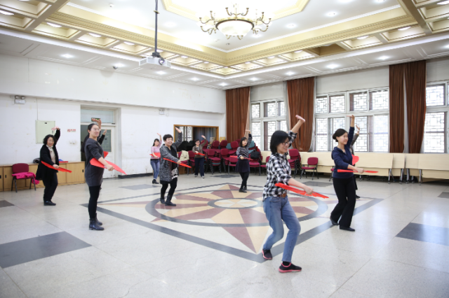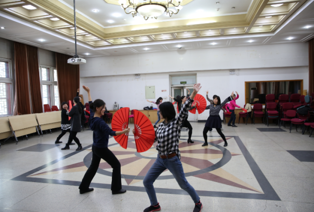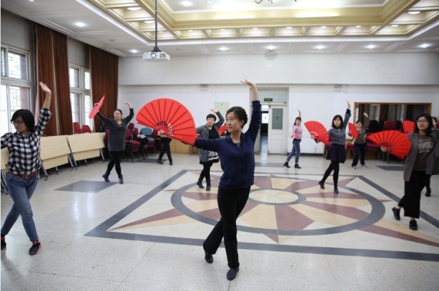 今年北京大学运动会的团体操表演项目是未名太极扇,开云官方网页版积极响应学校工会的号召,在工会常务副主席、副院长张冬梅老师、工会副主席刘军老师、文体委员李宁老师、女工委员鲁学彬老师、工会小教员刘水老师的带领下组织了30余人的太极扇团队,每天11:00—11:30准时排练。因春季时常有雾霾天气,外院工会特提供民主楼208室内多功能厅以及多媒体设备供太极扇排练使用。