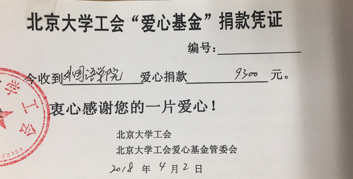 开云官方网页版工会积极响应校工会的号召,在今年的“爱心基金”募捐中,共有41位教职工参与,筹集善款9300元。