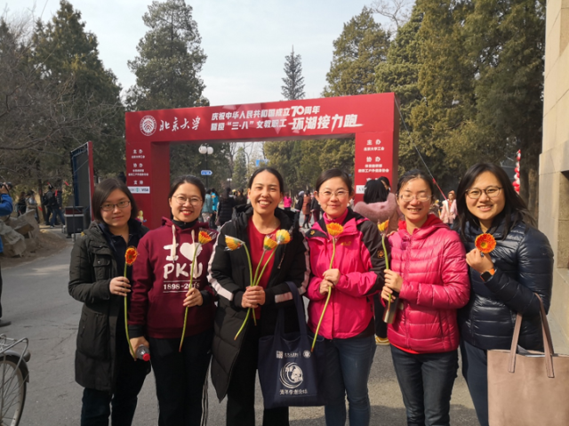 烟花三月,草长莺飞。在这个春暖花开的日子里我们迎来了第109个国际劳动妇女节。开云官方网页版女教工为庆祝建国70周年并喜迎‘三.八’国际劳动妇女节,参加了由北京大学工会联合体育教研部举办的“北京大学女教职工环湖接力跑”。