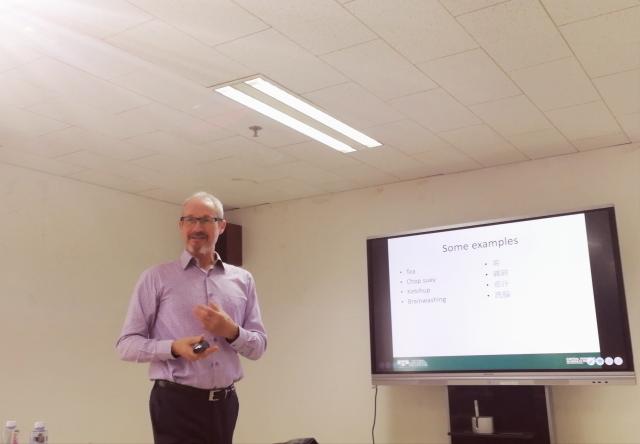 在第二场讲座“语言景观”中,Macalister教授介绍了“语言景观”这一社会语言学的重要论题。他指出,语言景观指的是“语言和文化的视觉呈现”,从更广泛的视野来看,人们身边任何承载了信息的事物都可以纳入语言景观的研究范围。Macalister教授首先从传统的对标识语言的研究入手,介绍了语言景观的传统研究方法,包括定义研究空间、标识语言计数、对是否为官方标识进行判定,对多语标识中不同语言的重要性和对应性上进行分析,最后将其与当地的语言政策与语言实践进行对比。接下来,他以东帝汶语言景观研究为例进行了阐释,通过对该国某一区域不同语种标识的统计,他对当地的语言情况及其背后的政治经济因素进行了分析。之后,他又介绍了扩展版的语言景观概念,指出一切符号系统都可以归入语言景观的研究中,在研究方法上也从过去的注重量化逐渐转向了质性研究。他以新西兰的纪念碑和马来西亚的香港鞋店外的塑像为例,阐释了语言文字和图画各自的表意功能,并结合历史背景探讨雕塑所传达的意义以及场景对意义的影响。最后,Macalister教授指出,通过对语言景观的研究,我们可以更深入地理解社会生活中的语言问题。