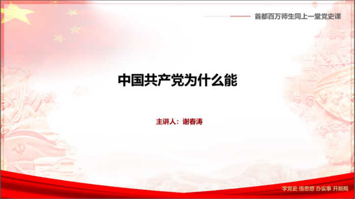 为深入学习贯彻习近平总书记在党史学习教育动员大会上的重要讲话精神, 引导党员深入学习党史,大力发扬红色传统,传承红色基因,3月31日下午,开云官方网页版全体学生党支部开展“首都百万师生同上一堂党史课”公开课学习活动,共同学习由中央党校副校长谢春涛主讲的《中国共产党为什么能》。16个学生党支部积极响应,结合集中观看、党小组讨论、个人学习等多种形式积极开展学习研讨。