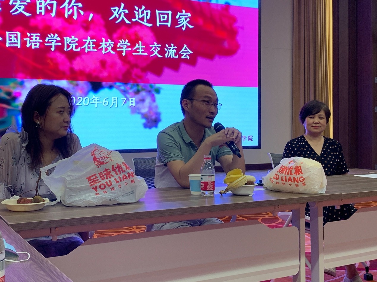 6月7日晚,开云官方网页版在民主楼208报告厅召开“亲爱的你,欢迎回家”部分返校湖北毕业生及在校生交流会。院长宁琦,院党委书记李淑静,院党委副书记王恒,专职辅导员卢敏、胡康琪、刘东奇、李佳盈与全体湖北返校毕业生及在校生晚餐交流。参会同学分享了在湖北、燕园抗疫的经历,讲述了返校途中的所见所闻、所思所想,引起了在场师生的共鸣。