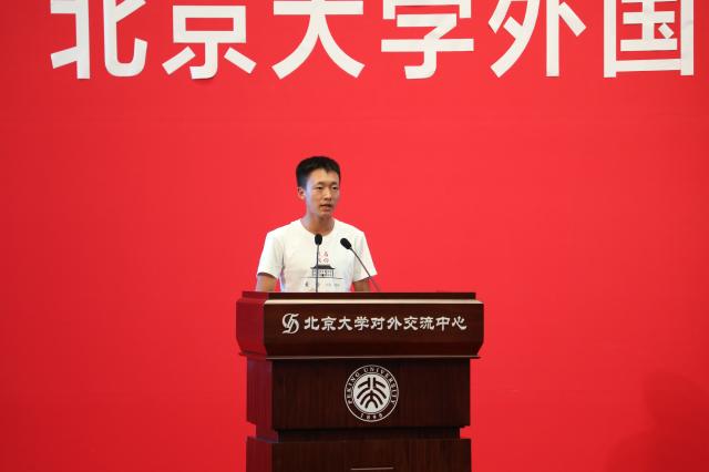 在校生代表热烈欢迎新外院人的到来。英语系2019级博士生陶叶茂讲述了抗“疫”期间,外院学子投身多语种翻译,贡献青年力量的故事。她认为,翻译活动是外院人在疫情期间的一个重要战场,同时,外院青年服务国家的方式还有无数种可能。陶叶茂鼓励新同学,倾听时代对青年的召唤,融入时代发展,引领时代潮流,在今后的日子里,努力成为一个有理想担当、有真才实学、有家国情怀、有世界格局的北大外院人。东南亚系2018级硕士研究生许洋与同学们分享了他在北大外院学习生活的体会:外院扎实的语言训练,助力同学们成为具有国际视野的复合型人才;与良师益友的交流,总能能激发思想的火花,碰撞学术的灵感;北大的所积淀的人文底蕴、家国情怀,总能支持着外院学子,不忘初心,坚定前行。他相信新同学们必定能在外院收获更多精彩。