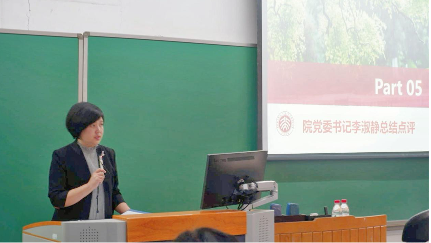 活动最后,李淑静作总结点评。她代表学院党委对校团委的支持与指导,对各位任课教师、助教的倾心付出,对同学的扎实投入表示衷心感谢。她表示,在实践中,看到了外院学子较强的组织和调研能力、敏锐的观察力、对未知事物的求知欲和探索欲,更看到了外院青年作为北大人应有的责任与担当。新一年的思政实践课程即将启动,李淑静对大家提出了几点希望:第一,强化学习,夯实实践理论基础;第二,广泛了解,认真观察社会现象;第三,深入思考,培养实践调研能力。她希望同学们能以知促行、以行求知,期待大家在新一年的精彩表现。
