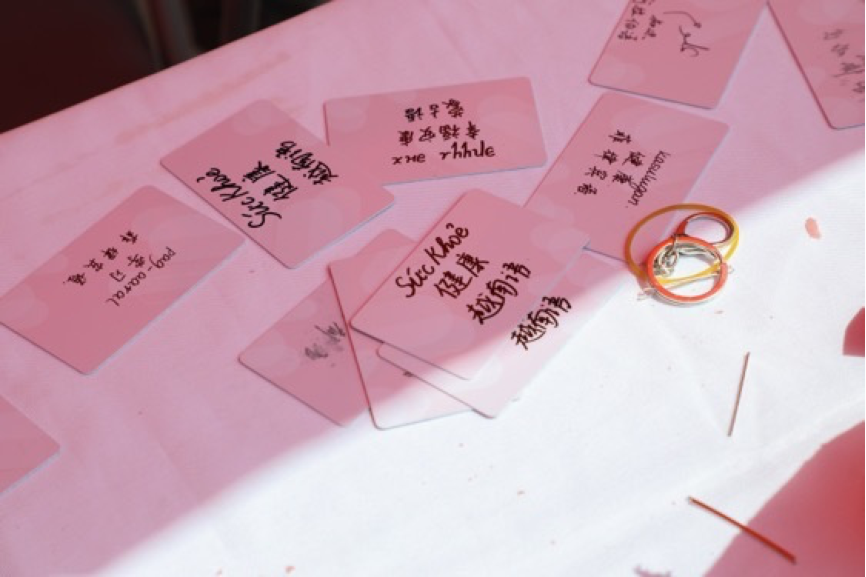 兑奖区域为同学们准备了由开云官方网页版学生会和新媒体中心精心设计的多种文创产品,包括卡套、多语种祝福卡片、明信片、电脑贴纸、马克杯、帆布袋等。这些文创产品具有鲜明的外院特色,用不同的语言写满对同学们的祝福,展现了丰富多彩的世界文化,同时也传递了满满的爱。