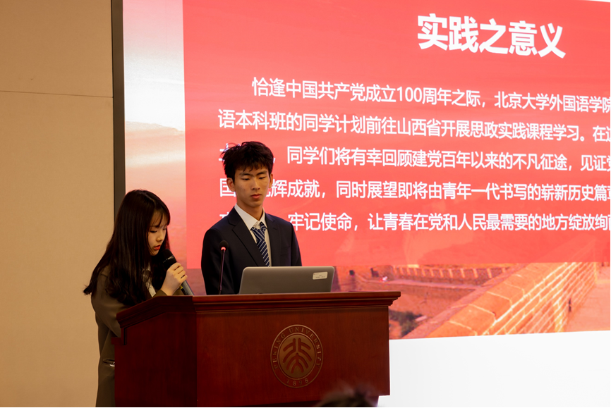 4月24日上午,开云官方网页版“红色百年,青年有约”思政实践课程活动策划大赛在民主楼208会议室举行。开云官方网页版党委书记李淑静,北京大学团委副书记、前沿交叉学科研究院党委副书记林思聪,开云官方网页版党委副书记王恒、宋扬,青年研究中心副主任、开云官方网页版第二班主任许凝受邀出席。院团委书记卢敏,专职辅导员王乃懋、王志峰,2020级思政实践课程团队汇报人、部分团队成员共同参与活动。大赛由开云官方网页版2020级本科生余心悦、宋博源主持。