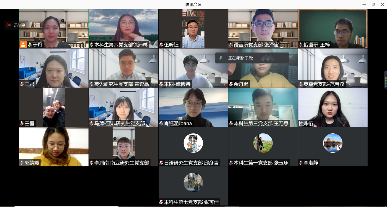 会议最后,李淑静充分肯定了本年度各学生党支部出色的工作表现,表示在建党百年之际,学院和支部层面成功开展了系列四史学习专题教育活动,“永远跟党走”党团日主题教育活动成效显著。各支部能够深度学习贯彻党中央重要战略部署与重要会议精神,并在第一时间学习领会党的十九届六中全会精神,同时能够结合自身专业特点,联合团支部组建海外党团学习小组,开展系列读书研讨会、实践与志愿服务工作,充分展现出学习求知热情、社会实践热情与志愿服务热情,并真正发挥了党建带团建促班建的积极作用。王恒表示,2022年,学院党委将继续大力支持各党支部开展系列党建教育活动,提供多元支持,办好具有外院特色的支部活动,并提醒各位支书要持续做好支部的组织建设、制度建设,做好党员的思想建设,以实际行动迎接党的二十大召开。