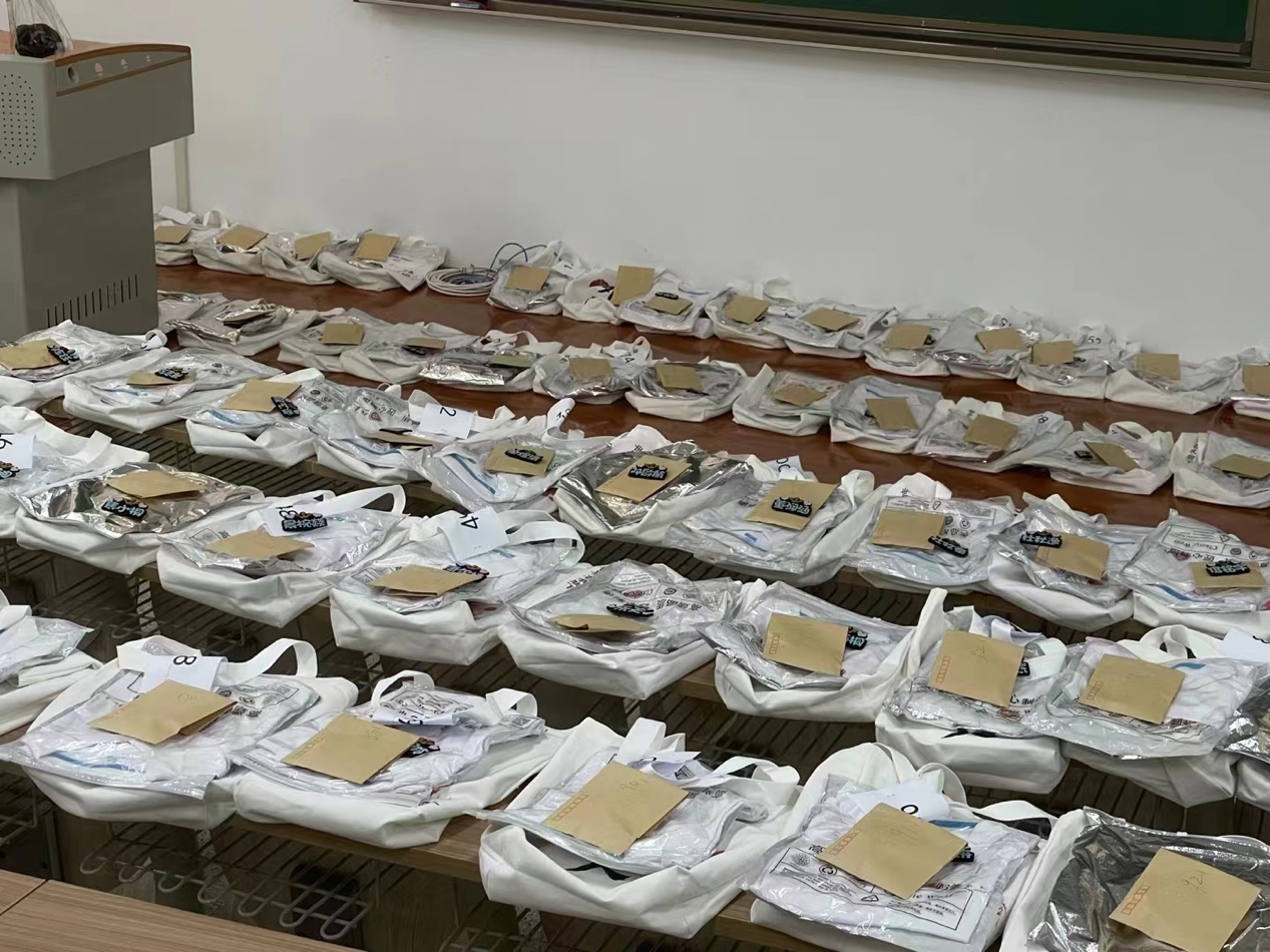 在为新入园的同学们准备的物料包中,包含有外院特色的院衫、特别定制的姓名牌、内容详实的本科生学生手册、即将陪伴新生度过校园生活的宿舍钥匙、校园卡等物品。它们被妥善安置在外院人精心设计的帆布包中,凝聚着外院师生对新生的关怀与祝福。