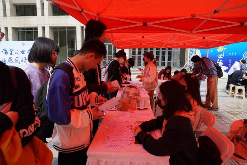 游戏摊位精彩纷呈,“书写·世界”摊位提供了外院特色明信片,师生们可以选择自己喜欢的外语原文诗段并誊写到明信片上;“世界文化知多少”摊位则提供了和外国地理、历史和诗歌电影等文化知识相关的趣味题目;“猜猜我是谁!”摊位则要求在十五秒内回答出抽中国旗所对应的国家、首都及常用语言。互动参与者通过参与趣味游戏,在奖券上赢得贴纸,兑换精美别致的开云官方网页版特色周边礼品。