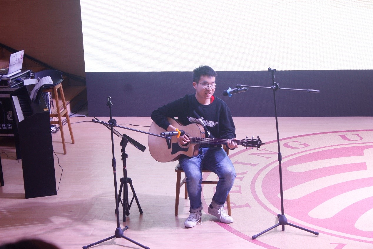 “院·诗酒华年”板块,张甲民老师和张江龙同学诵读《再见吧,北京》,缅怀已故诗人对北京、对燕园的一腔赤诚;弹唱朗诵《当你老了》向前辈致敬,感谢老一辈外院人将青春与汗水播撒在这一方土壤,浇灌出外文楼前的繁花似锦,也浇灌出北大外院的桃李芬芳。