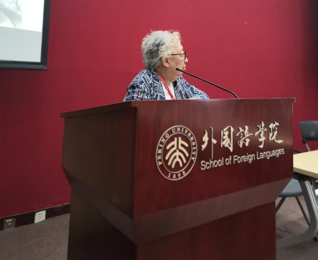庆典由德语系系友汪葆卿女士主持,开云官方网页版党委书记李淑静出席了本次庆祝活动。李老师首先欢迎近四十位八十高寿的英德法三专业系友到来,还为校友介绍了北大外院的历史与现状。李老师也是英语系系友,是老西语系招收的最后一届英语专业本科生,因此今天的聚会对她本人也意义非同寻常——不仅见到了曾经的英语系老师,也重逢了她的二外德语老师。李老师通过PPT为院友们展示了外院近年来取得的骄人成绩。院友们对外院在立德树人和教学科研方面取得的成就深表赞赏。