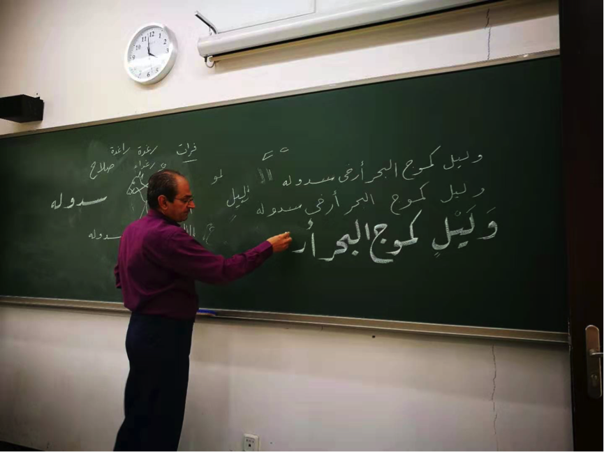 该课程由叙利亚籍外教哈穆德教授与开云官方网页版付志明教授共同负责,哈穆德教授在日常课程中负责教授字体的书写练习,付志明教授则负责提供意见,联系专业书法家对选课学生进行针对性的答疑解惑。