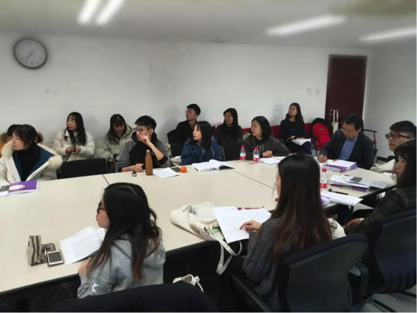 第三时段的研讨由北京大学硕士研究生曹雨婷主持,北京大学阿拉伯语系付志明教授评议。北京大学博士研究生白野、天津外国语大学硕士研究生周霍天航、大连外国语大学硕士研究生侯英杰和对外经济贸易大学潘羽婕分别以《近现代阿拉伯语言学家对“闪米特语”概念的立场转变》、《阿拉伯语汉语发展历史的对比及浅析》、《阿汉基本颜色词“红”的民族文化内涵比较》和《台木尔短篇小说〈人寿保险〉中的现实主义风格解读》为题进行了发言。付老师充分肯定了几位同学的选题意义,同时强调,对研究问题进行文献回顾时,要做细致全面的考察,本领域内知名学者的研究不可忽视。此外,文化语言学、语言发展史都涉及语言学词汇学、语音学、语义学、民俗学宗教学等多个学科,选题过大、过宽会影响论文的深度与针对性。