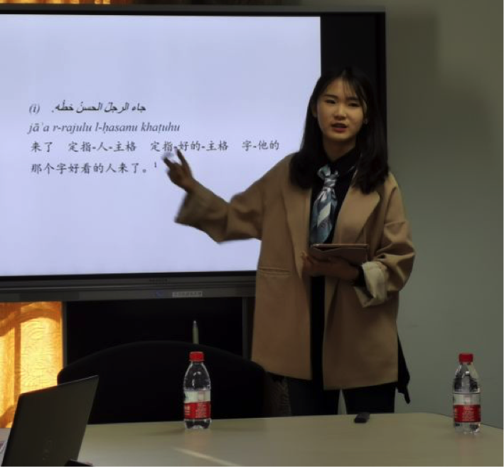 语言学分会场第一时段的研讨由北京大学博士研究生白野主持,北京外国语大学教授叶良英评议。北京第二开云官方网页版硕士研究生史满鑫、西安外国语大学硕士研究生陈文婷和北京大学硕士研究生曹雨婷分别以《探究阿拉伯语中的“物主人宾”式动词》、《系统功能语言学视角下〈诗经〉阿译本中的语法隐喻研究》、《阿拉伯语因缘形容结构一致性分裂研究》为题发言。叶老师表示,有越来越多的同学关注阿拉伯语语言学研究,这是个好现象。好的论文需要解决三个问题:其一,“是什么”,这涉及概念的界定,如果论文使用的概念过多则容易失去重点。其二,“怎么样”,也就是说清楚概念背后的现象,即概念的表现形式。其三,“为什么”,即阐述现象、形式背后的原因。她认为宣读论文的三位同学都有上述意识,这是值得肯定的。同时叶老师还指出同学们论文写作中的不足,如要注意语料的丰富与准确性、论证与论据的匹配度、对理论解读的深入程度等。