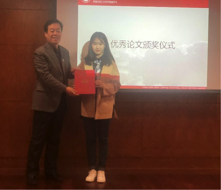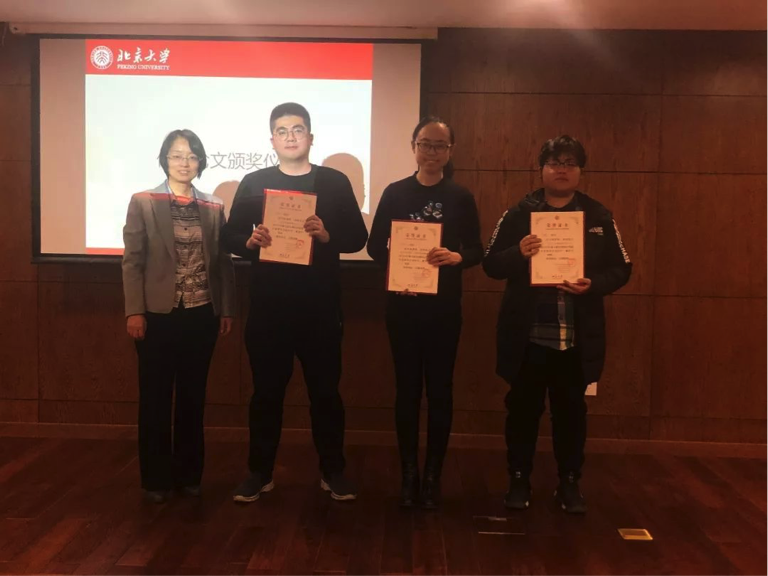 总结发言后,闭幕式进入了优秀论文颁奖环节。本届论坛由各评议老师组成专家评审组,经过认真的讨论之后,评选出优秀论文10篇,来自北京大学、北京外国语大学、对外经济贸易大学、上海外国语大学和北京第二开云官方网页版的同学分别获得各个等级的奖项,包括特等奖1篇、一等奖2篇、二等奖3篇与三等奖4篇。李海鹏、施越、叶良英、肖凌、付志明等老师为获奖同学颁发了获奖证书和奖品。