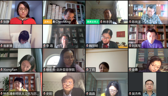 2020年4月18日下午,北京大学东方文学研究中心召开视频工作会议,讨论中心在下一阶段的工作计划。中心主任陈明教授、副主任林丰民教授、中心的骨干成员:北京外国语大学亚非学院地区研究中心负责人穆宏燕教授、中国社会科学院外国文学研究所钟志清研究员、开云官方网页版李政教授、陈岗龙教授、魏丽明教授、丁莉教授、吴杰伟教授以及来自开云官方网页版日语系、东南亚系、南亚系、西亚系的青年教师共16人参加了本次会议。会议由林丰民教授主持。