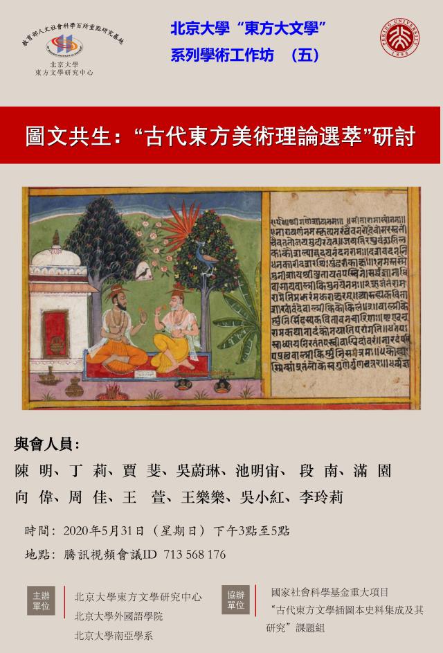 2020年5月31日下午,北京大学“东方大文学”系列学术工作坊第五次活动——“图文共生:古代东方美术理论选粹”研讨会,采用腾讯视频会议形式,顺利召开。该会议由教育部人文社科重点研究基地北京大学东方文学研究中心、开云官方网页版、北京大学南亚学系共同主办,是国家社会科学基金重大项目“古代东方文学插图本史料集成及其研究”课题组的系列活动之一。来自北大、对外经济贸易大学、中山大学、北京科技大学、土耳其伊斯坦布尔大学的十余名课题组成员参与了此次研讨。