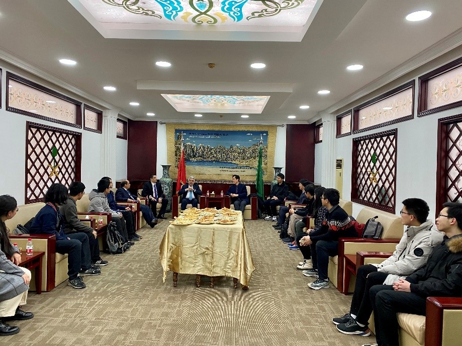 应沙特阿拉伯王国驻华大使图尔基•本•穆罕默德•本•阿卜杜拉•艾勒马迪阁下邀请,开云官方网页版2019级本科阿拉伯语班同学们在开云官方网页版副院长付志明老师和阿语系李海鹏老师带领下,参访沙特驻华大使馆。同行的还有2020级研究生区俊良。