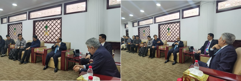 首先,艾勒马迪大使和师生代表团在使馆客厅内会谈。付志明老师首先代表师生感谢大使阁下的邀请,并表达了对中沙友谊的祝愿。随后,同学们就学习中遇到的困惑向大使踊跃提问。大使耐心地回答了同学们关于沙特2030愿景、石油问题、文化保护问题等热点话题的疑问,和大家展开互动。当提到中沙青年交流时,大使和在座的文化参赞热情洋溢地说起先前中沙青年交流的项目,并表示期待更密切的中沙青年交流。席间,大使用自己的个人经历和体会勉励同学们要不断思考、多问问题。王佩鸣、夏铁木还获得了大使赠书,两位同学表示将和大伙儿一起,在感兴趣的领域努力钻研、不断进步。