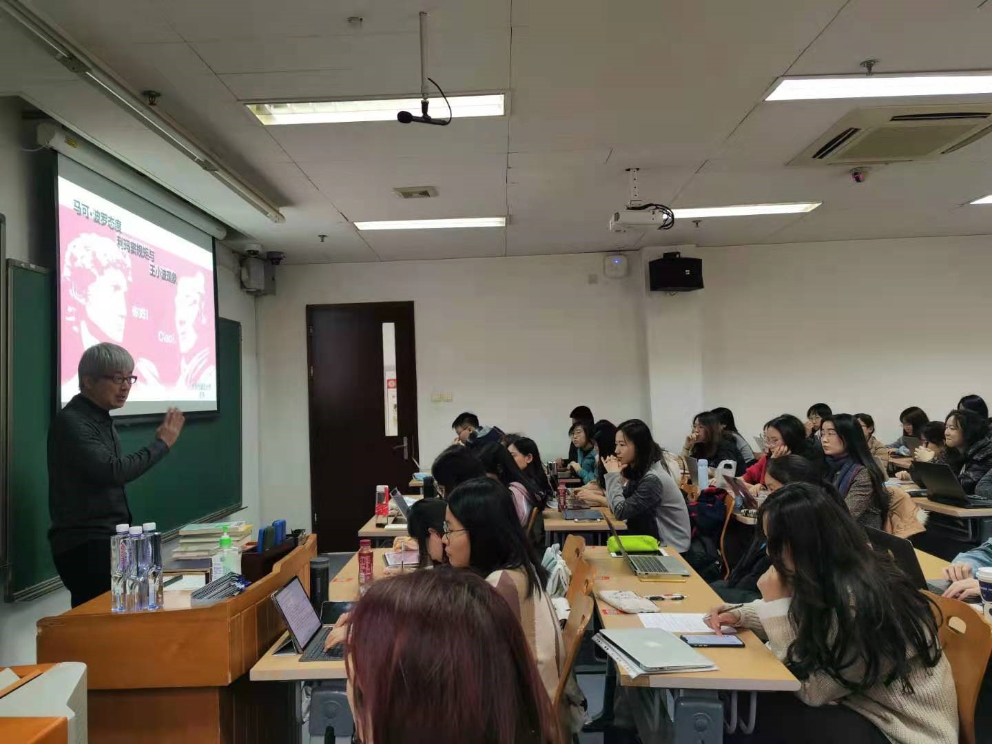 文老师首先介绍了20世纪初中意文化交流的历史,并指出此段历史及西学东渐进程中几位重要的人物,如胡适、周作人、钱稻孙、朱光潜、田德望、吴兴华等,都与北大有着深厚的渊源。