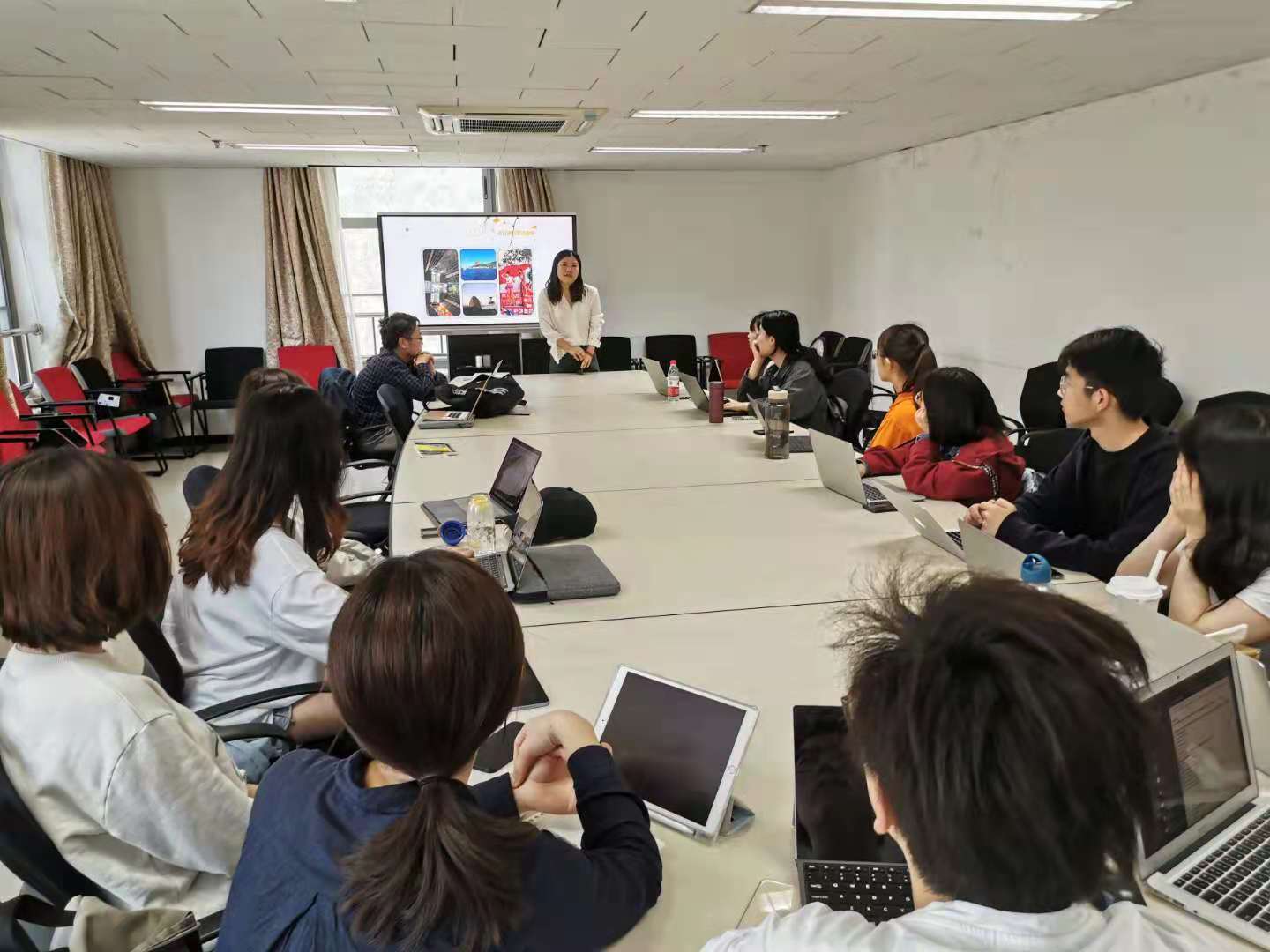 鲁扬老师还谈到传媒行业在当今世界的挑战与机遇。他指出,在媒体大融合的背景之下,亟需既懂外语,又懂对外交流技巧的专业人才。外语专业的学生不仅要学好语言,还要尽可能多地掌握新媒体技术,比如摄影、摄像、音视频剪辑等,并要时刻保持好奇心,广泛了解对象国家的国情文化。鲁扬老师建议葡语专业学生可以多浏览巴西、葡萄牙等葡语国家媒体的文章,不仅能够提高语言能力,更可以从中了解他们对中国的看法,以便提高对外交流的针对性,更好地传递中国声音。
