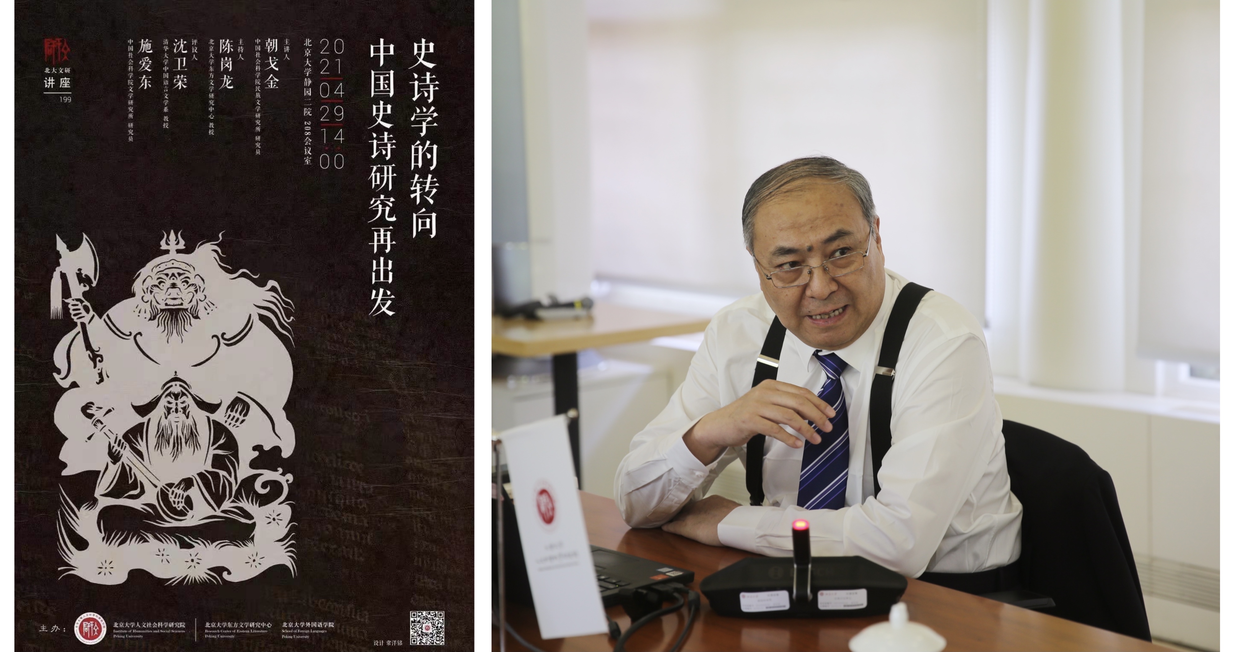 2021年4月29日下午,中国社会科学院学部委员、民族文学研究所所长朝戈金研究员主讲的“史诗学的转向——中国史诗研究再出发”讲座在线下线上同步举行。本次讲座由北京大学东方文学研究中心陈岗龙教授主持,清华大学中文系沈卫荣教授、中国社会科学院文学研究所施爱东研究员评议并参与讨论。
