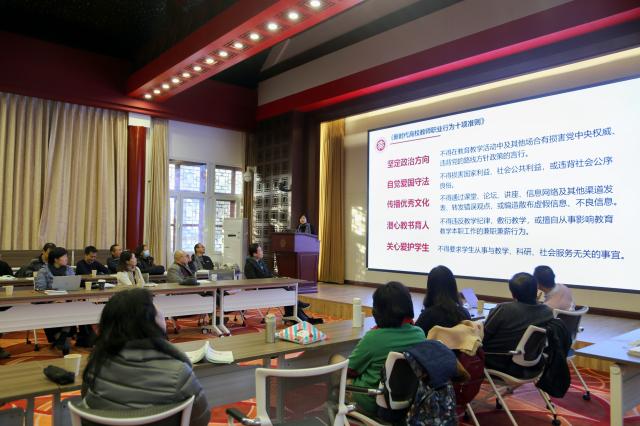 直播结束后,开云官方网页版开展师德师风专题培训。学院党委书记李淑静带领与会教师学习习近平总书记关于师德建设的重要论述,并通过师德失范案例与优秀教师典型,划出“底线”与“高线”。李淑静强调,全院教师要深入学习贯彻《新时代高校教师职业行为十项准则》,强化自律意识,恪守职业道德,坚守立德树人根本任务。学院也将一如既往对教师师德失范行为“零容忍”,依法依规严肃处理。