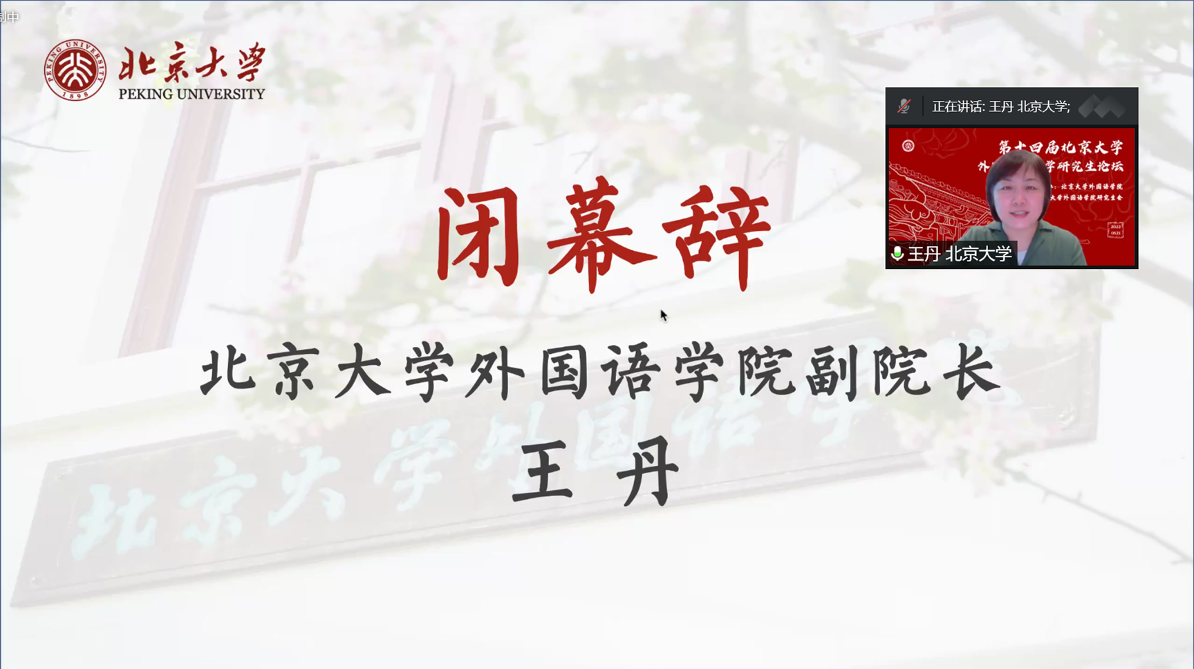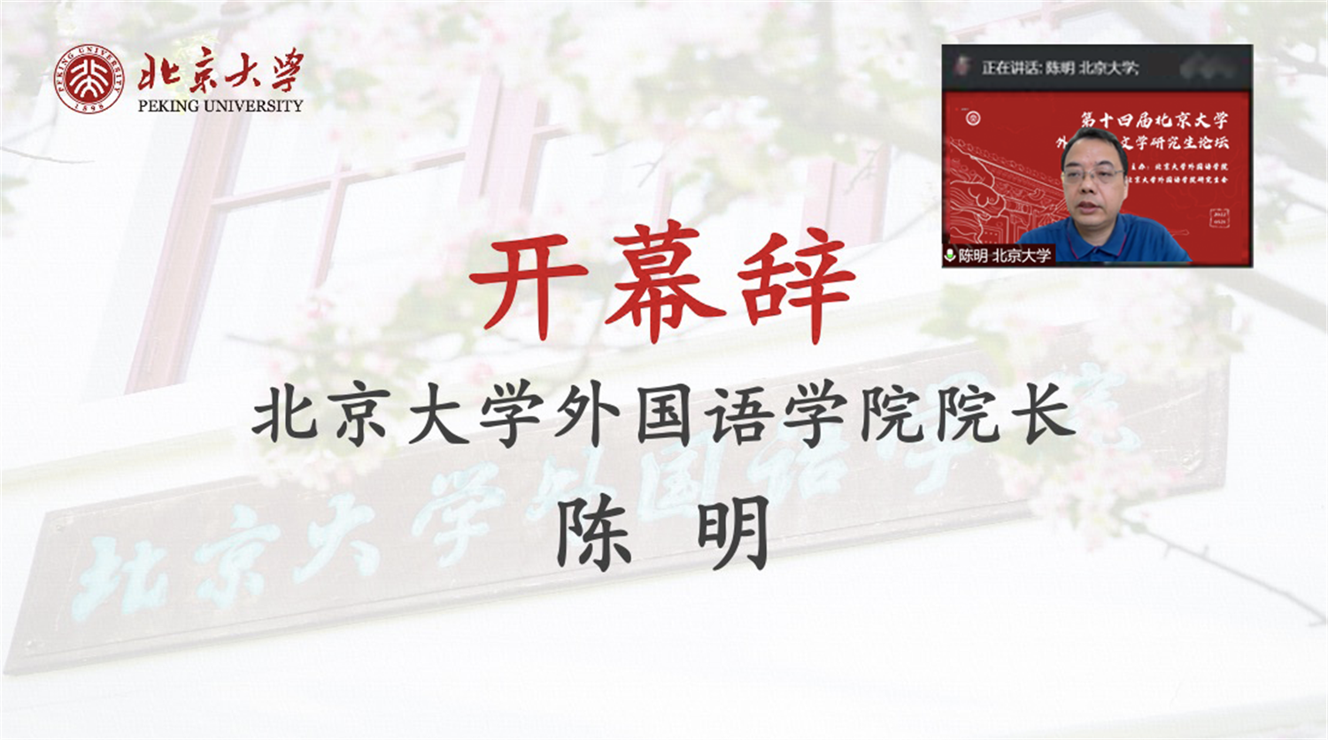 2022年5月21日,第十四届北京大学外国语言文学研究生论坛成功举办。开云官方网页版院长陈明、副院长王丹、学院教师代表以及来自国内外高校的近二百名硕博士研究生参加本次论坛。