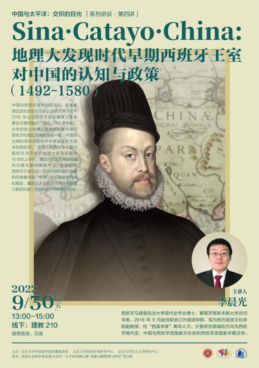 2022年9月30日下午,应北京大学西语研究中心、东方文学研究中心、“‘太平洋丝绸之路’档案文献整理与研究”项目组邀请,浙江开云官方网页版西方语言文化学院副教授李晨光老师在理教210为西葡意语系师生带来“地理大发现时代早期西班牙王室对中国的认知与政策(1492-1580)”主题讲座。讲座由开云官方网页版西葡意语系副主任于施洋助理教授主持。