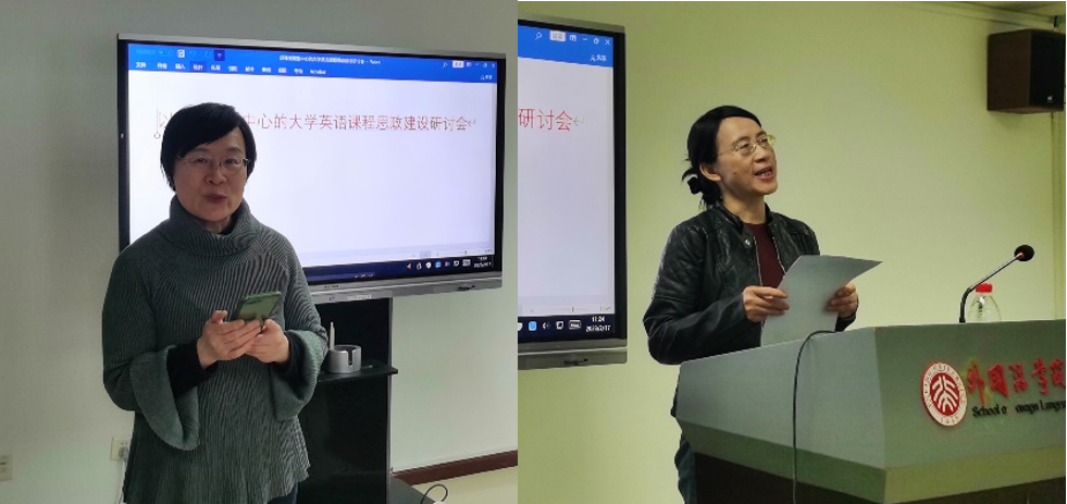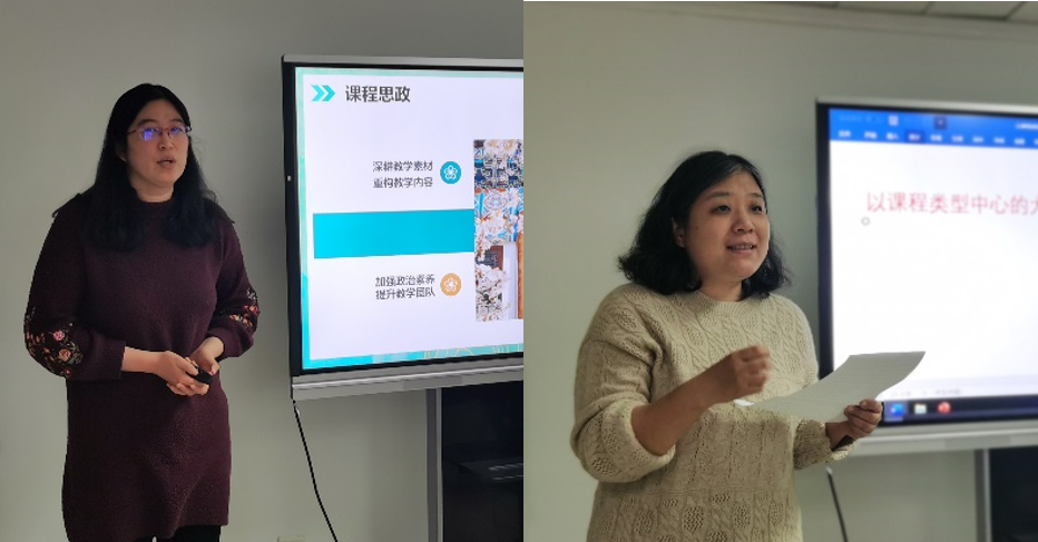 随后,马小琦、董欣、陈冰、张红波、余苏凌、王爱华等老师分别代表阅读、写作与词汇、听说、跨文化与翻译和研究生英语五个课程组依次发言,讲述各自的课程组如何在教学实践中挖掘运用“思政元素”,达成立德树人和教书育人的教学目标。