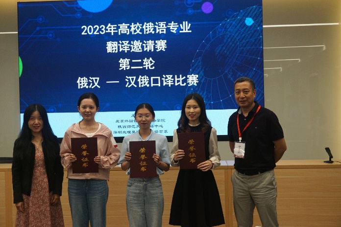 2023年5月21日,“2023年高校俄语专业翻译邀请赛”第二轮“俄汉—汉俄口译比赛”在北京外国语大学成功举办。我院俄语系学生在比赛中斩获佳绩:2019级本科生俞文沁获本科生组一等奖,2022级硕士生徐星若获研究生组三等奖,2021级硕士生吴章翰获研究生组优胜奖。