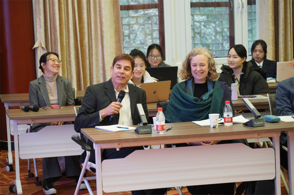 外籍教师Glen Penrod和Elspeth Tilley提问并点评比赛