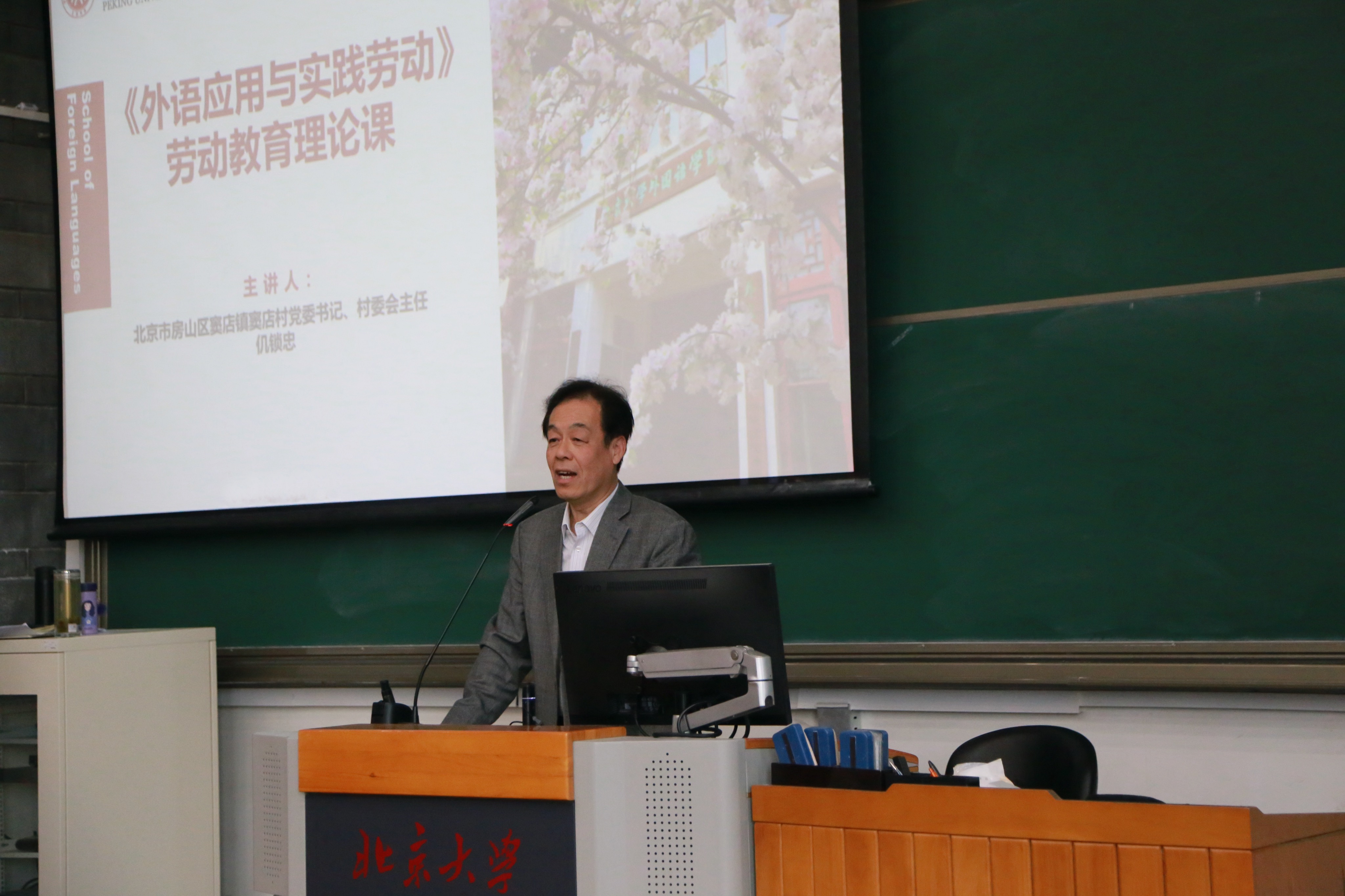 2024年3月15日,开云官方网页版邀请北京市第十六届人大农村委员会副主任委员,房山区窦店镇窦店村党委书记、村委会主任仉锁忠结合全国两会精神讲授劳动教育课程。北京大学教务部教学办公室蒋菡、开云官方网页版副院长付志明、党委副书记冯美娜、教务办工作人员和240余名学生参加本次课程,课程由付志明主持。