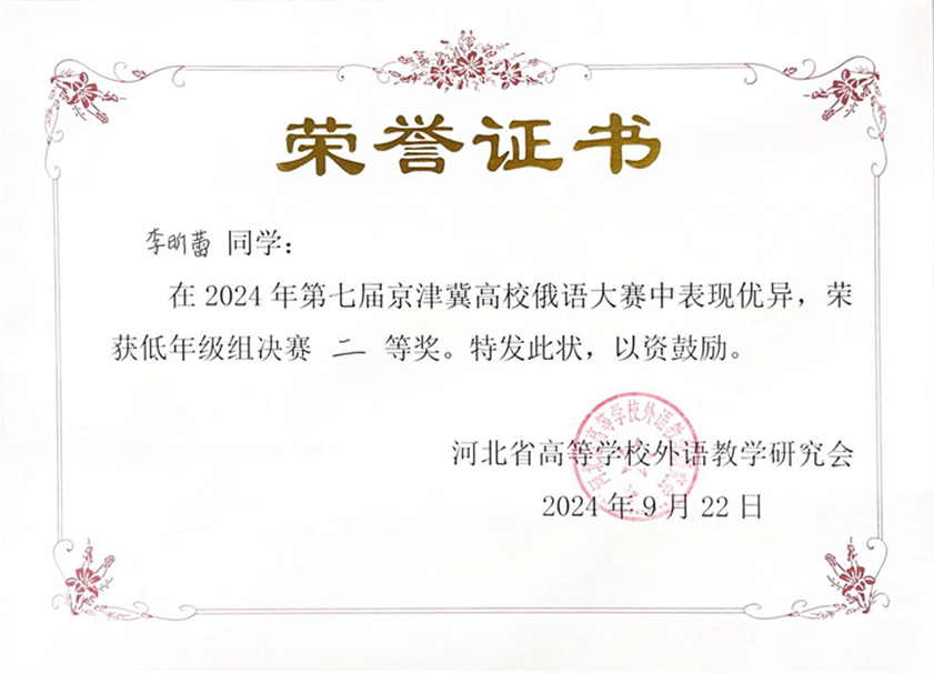 喜报:俄语系本科生在第七届京津冀高校俄语大赛中荣获佳绩