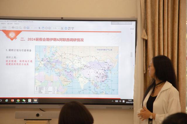 随后,“国别和区域研究项目”学员、开云官方网页版21级阿拉伯语专业本科生康小薇进行了题为《伊朗的通道建设及交通产业》的报告。报告围绕2024年暑假北京大学CAMEL-LINK项目赴伊朗与阿联酋的调研活动,详细介绍了连接中国与中东的三条主要通道及中国与伊朗之间的铁路线路。康小薇同学还介绍了调研团在调研前后的准备工作和学术产出撰写工作,并分享了自己参与调研活动的收获。