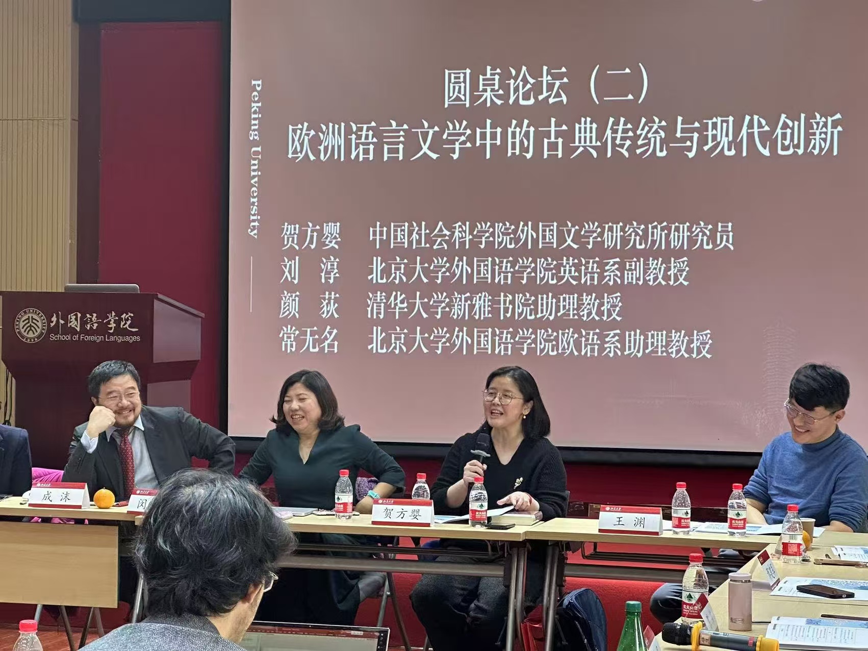 北京外国语大学意大利语王军教授、北京航空航天大学意大利研究中心陈绮主任、对外经济贸易大学意大利语系吴菡主任、北京语言大学意大利语系周婷主任等亦参与讨论并对欧语学科发展提出中肯建议。此次会议是北京大学欧语系打通学科与专业壁垒的有益尝试,为日后展开更广泛的学术合作奠定了基础。