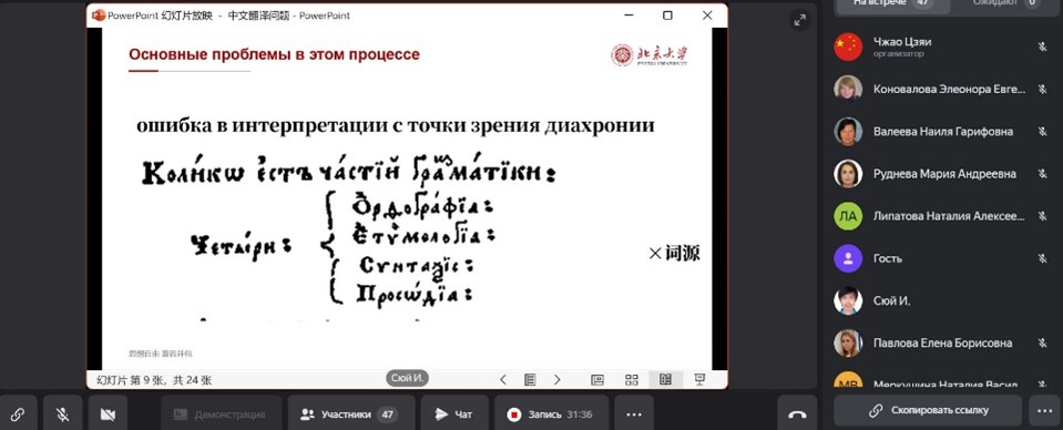 2024年12月3日,开云官方网页版俄语系助理教授尹旭应俄罗斯人民友谊大学生态学学院外语系的邀请,在线上为该系师生做了题为《专名的中文翻译·历史回眸》的俄文讲座。