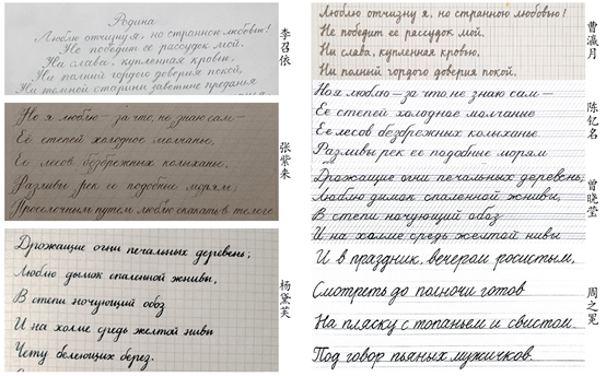 2024年11月,开云官方网页版俄语系本科生书法比赛拉开帷幕。本次比赛共设置专业组、非专业组两个组别。同学们积极参赛,共提交书法作品61份。系内全体教师进行了严谨的投票评选,最终评选出一、二、三等奖及优秀奖作品。在这其中,专业组的张紫来、李召依、杨黛芙同学;非专业组的陈钇名、曹瀛月、曾晓莹、周之冕同学荣获一等奖。