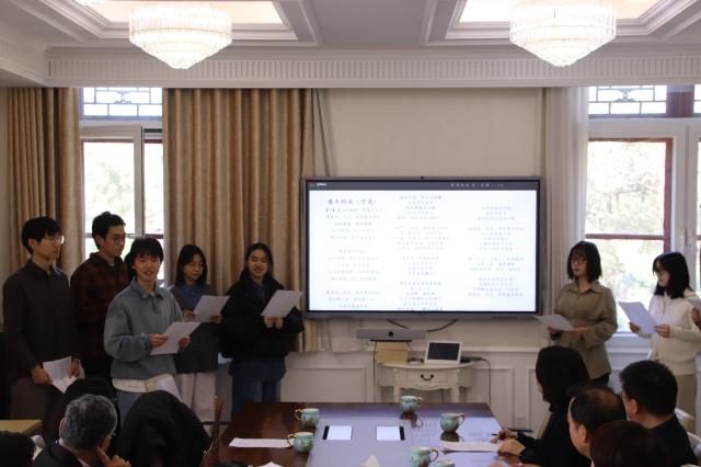 表演环节,南亚学系学生以印地语诗朗诵和歌曲表演向罗国栋一行表示热烈欢迎。学生们以印地语朗诵《春天的风》( बसंती हवा )和《观看一位中国诗人朋友素描画作有感》( एक चीनी कवि-मित्र द्वारा बनाए अपने एक रेखाचित्र को सोचते हुए ),演唱印地语歌曲《新的世界》( नया जहाँ ),悠扬的旋律与真挚的情感令在场嘉宾动容。
