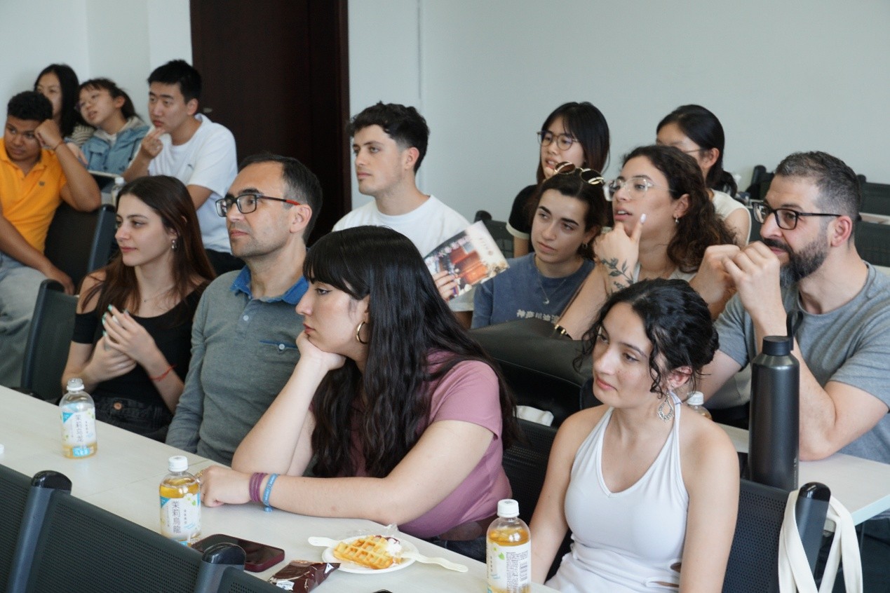 2025年4月15日下午,参加2025年北京大学-西班牙格拉纳达大学孔子学院春令营活动的18位学生(以下简称格大孔院同学)与我校西班牙语言文学系2022级、2023级、2024级部分学生(以下简称北大西语系同学)一同举行了主题交流活动。在本次活动中,北大西语系同学通过组织3个互动游戏与微讲座,从“语言文字”与“音乐”两个角度向格大孔院同学展示了中国的传统与当代流行文化。双方在活动中积极互动、对话,增进了对彼此语言与国家的了解。