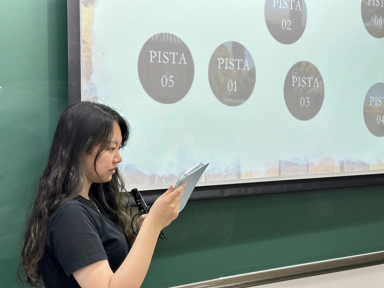 在第三个环节,2023级本科生李雨萱同学组织进行了“音乐里的中国”(China en música)展示,将唢呐、古筝、二胡等中国民族乐器与流行音乐结合,串联起中国从传统到当代源远流长的音乐文化。